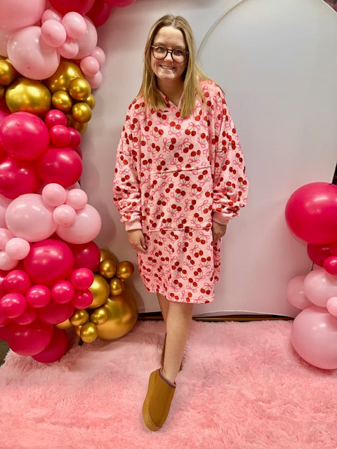 Cozy Blanket Hoodie- Cherry Bomb