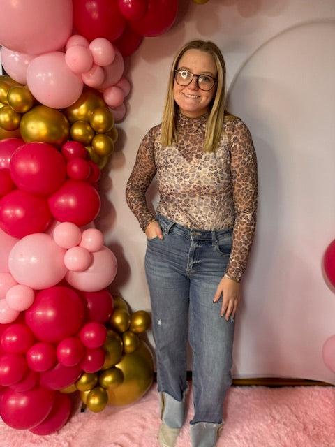 Leopard Mesh Long Sleeve Top