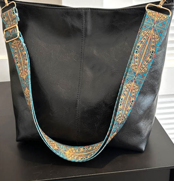Retro pattern strap vegan leather crossbody shoulder bag